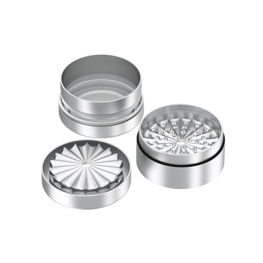 Der Aufbau entscheidet darüber, was nach dem Mahlen in deinen Händen landet. Beim 2-teiligen Modell besteht der Grinder aus Deckel und Mahlkammer. Du drehst, öffnest ihn und fertig. Das ist der schnelle, direkte Weg, ideal für alle, die ein kompaktes Werkzeug ohne viel Schnickschnack wollen. Der 4-teilige Alu-Grinder mit Sieb denkt einen Schritt weiter: Über ein feines Sieb zwischen Mahl- und Pollenkammer werden beim Grinden Trichome vom gröberen Material getrennt und sammeln sich unten separat. Wer regelmäßig dreht und wirklich nichts verloren gehen lassen will, weiß, was das über Wochen bedeutet. Zusammengehalten wird das Ganze durch starke Neodym-Magnete, damit du nicht plötzlich die Einzelteile in deiner Tasche liegen hast. Ob du nun den 2-Teiler bevorzugst, weil er direkter ist oder den 4-Teiler, weil er mehr aus deinem Kraut rausholt – beides findest du in unserem Sortiment.