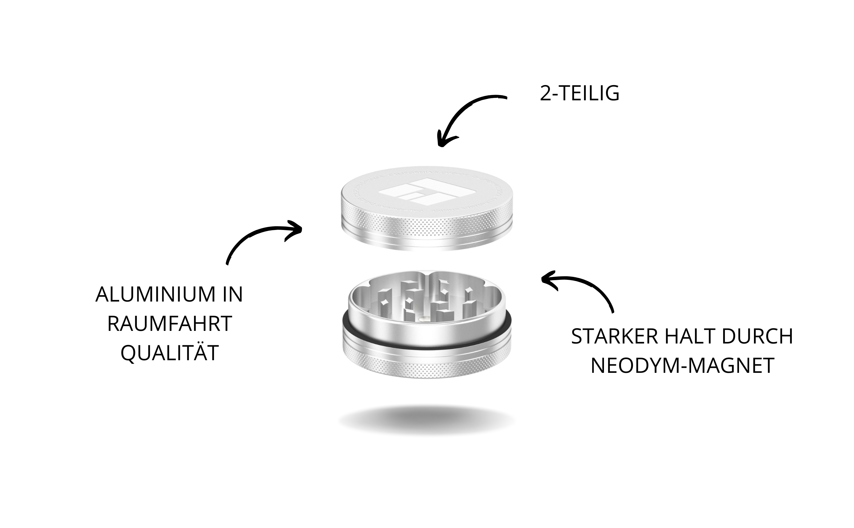 Durch sein geringes Gewicht und die handliche Größe ist der 2-teilige Aluminium Grinder perfekt für Reisen oder den täglichen Gebrauch unterwegs.