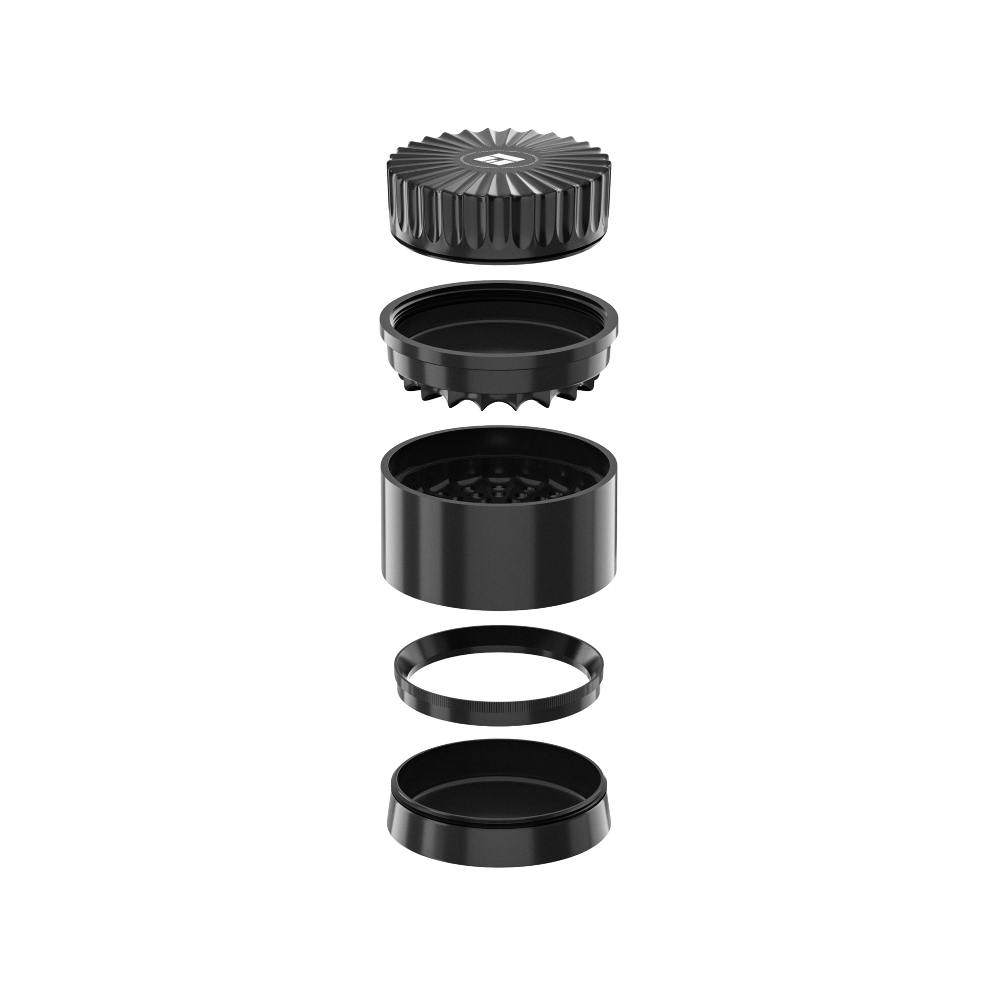 - Öffne den unteren Verschluss durch eine Vierteldrehung, um an dein gemahlenes Kraut zu gelangen.
