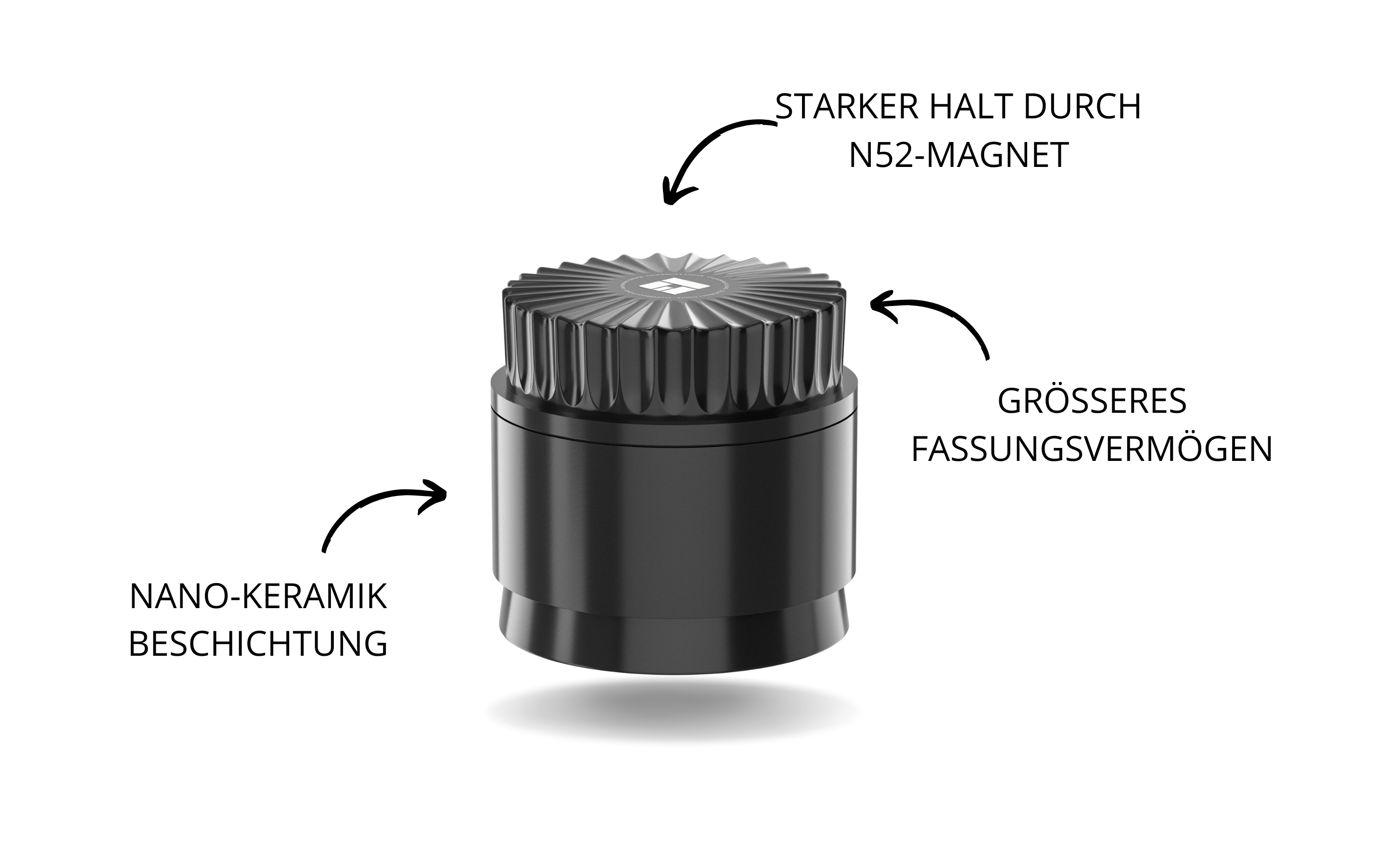 Ein hochwertiger N52-Neodym-Magnet fixiert Deckel und Gehäuse zuverlässig. So bleibt der Grinder sicher verschlossen – auch beim Transport öffnet er sich nicht unbeabsichtigt.